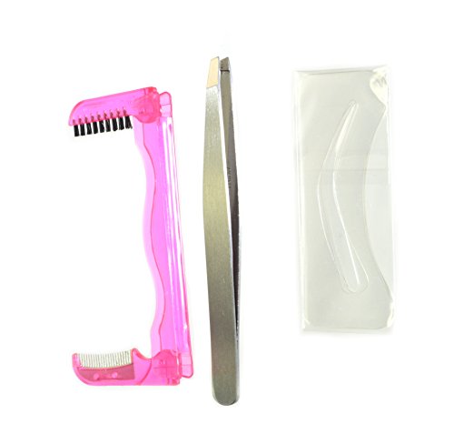 Itools Professional Slant Tip Tweezers with Eyebrow Styling Tool and Bro Stencil.
