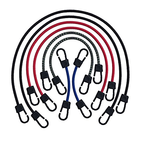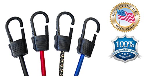 Heavy Duty Bungee Cords with Hooks Proudly Made in USA By SUPER SMITHEE Tie Down Assortment Set with Scratch Resistant Metal Hook and SAFETY Latch 2 - 48" 2 - 36" 2 - 24" 2 - 12" Great Gift!