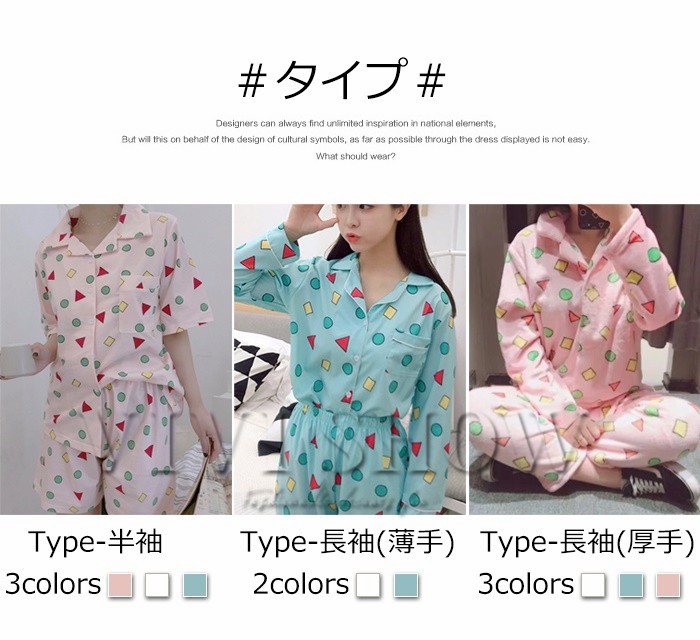 サイズ:FREE長袖:上総丈:68cm バスト:109cm 肩幅:42cm 袖丈:58cmズボン丈:93cm ウエスト:56cm ヒップ96cm半袖:上総丈:64cm バスト:105cm 肩幅:42cm 袖丈:19cmズボン丈:34cm ウエスト:56cm ヒップ96cm素材:綿、ポリエステル裏地:なし透け感:なし伸縮性:なし