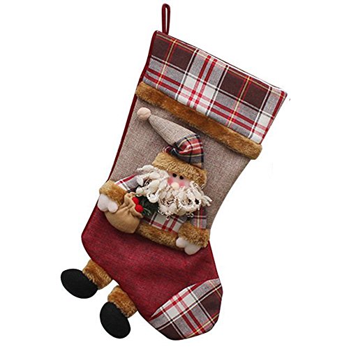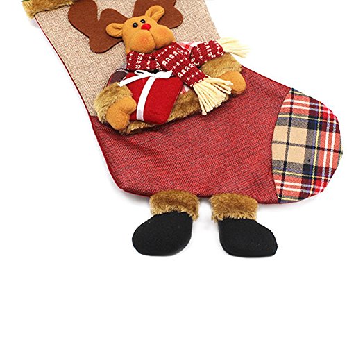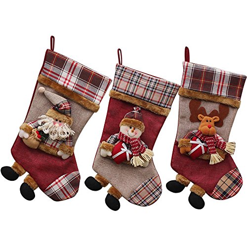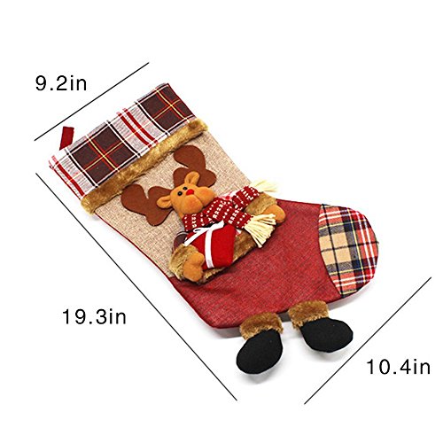 Christmas Stockings Cute Santa's Toys Plush 3D Applique Style Felt Stockings, Christmas Decoration,Embroidered Edges, Hanging Loops (3 Pack) Style1