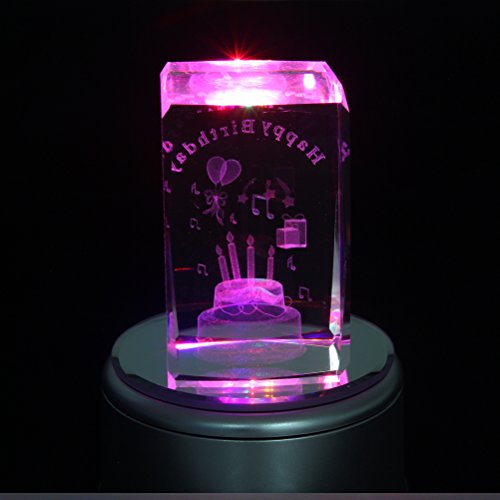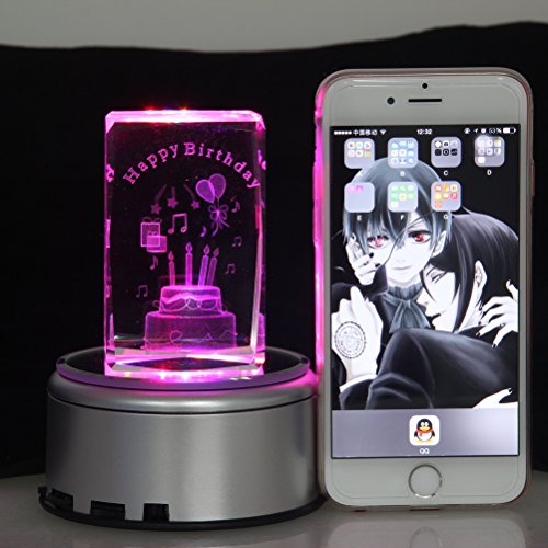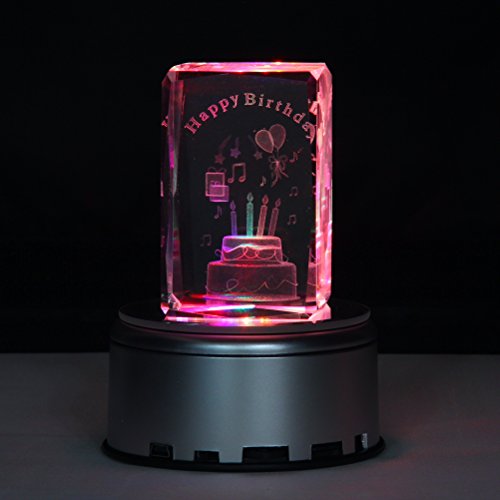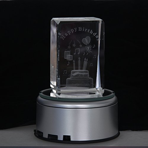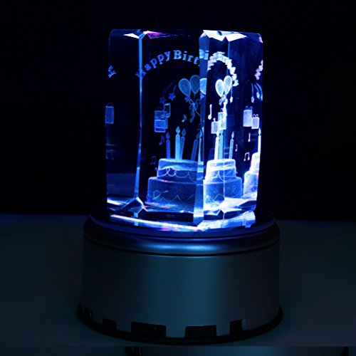 Title : LIWUYOU Personalized Custom Text Crystal 3D Birthday Cake Colorful LED Light Rotating Musical Box ,Music base, Small Cake