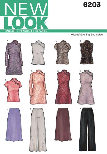 -. Feature : Misses Special Occasion Dresses in size A (8-10-12-14-16-18), New Look Pattern #6203 / Number of looks included: 10 / Designed in UK, Manufactured in USA / Instructions are written in English, Spanish, and French / Sested fabrics: Crepe, Crepe Back Satin, Jacquards, Laundered Silks-Rayons, Brocade, Satin, Shantung, Velvet; allow extra fabric for matching plaids or stripes