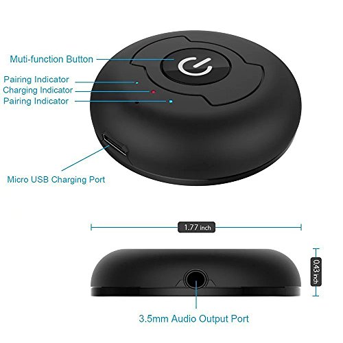 Was Sie erhalten: 1x Bluetooth-Transmitter, 1x Micro-USB-Ladekabel, 1x 3,5mm Audio Kabel, 1x Papier Bedienungsanleitung. Bitte beachten Sie: Dies ist nicht eine Bluetooth-Sender Empfanger.