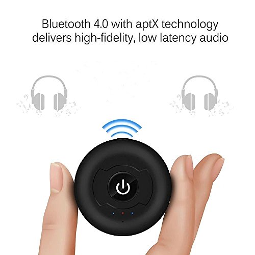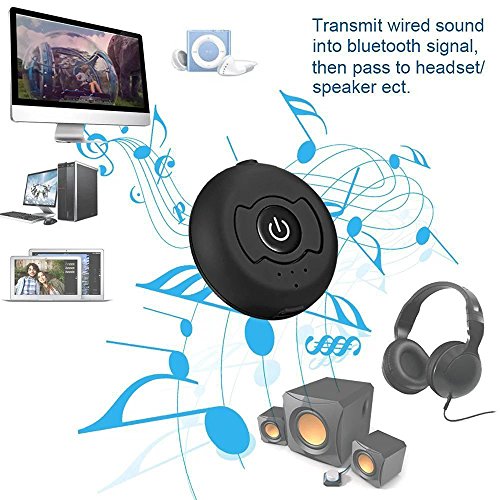 Bluetooth Musik-Transmitter mit ausgezeichneter Leistung, 5Stunden Spielzeit und 10Meter (33Feet) Arbeiten Reihe. Integrierten Lithium-Akku. Auch ausgestattet mit USB-Kabel, unterstutzt zu benutzen es angeschlossen mit AC Adapter