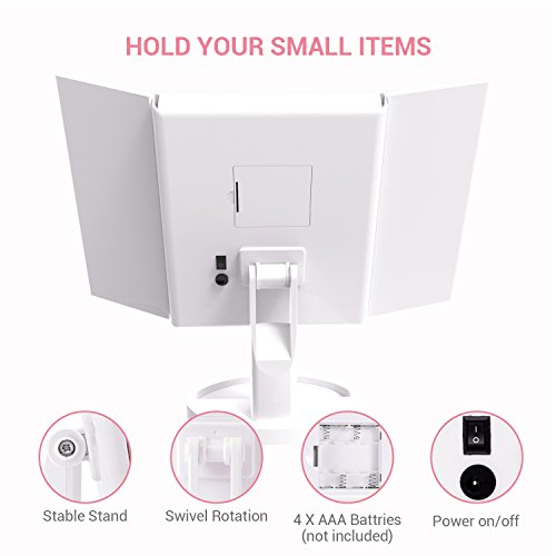 - 180°swivel rotatable, can be fixed at any position as needed, 3 panels vanity mirrors provided with wide angle viewing.