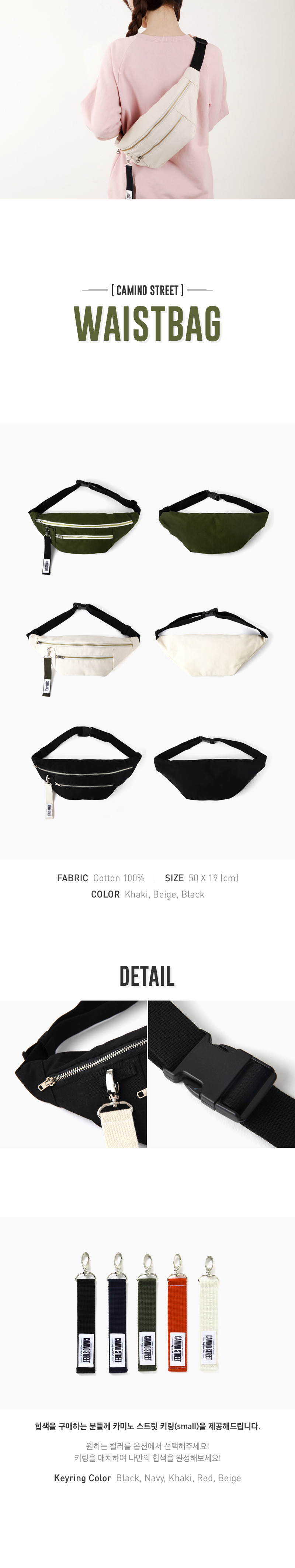 보다많은 수납공간과 포인트 키링으로 다양한 코디와 데일리룩에 맟추어 변화가능한 힙색으로 사용가능한 제품입니다.