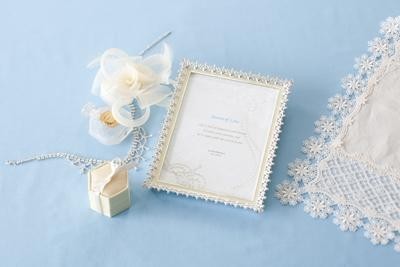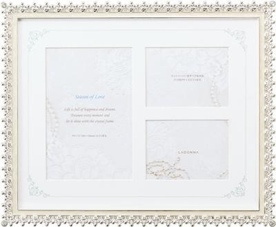 繊細で可憐。まるで上品にドレスアップした花嫁の装いのような美しいフレームです。四隅には大粒のクリスタルが施されています。 |