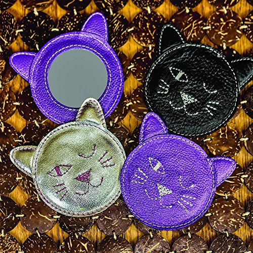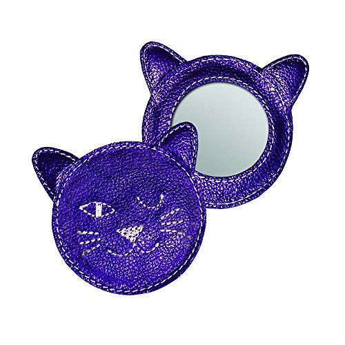 Winking Kitty Leather Compact Mirror - Purple