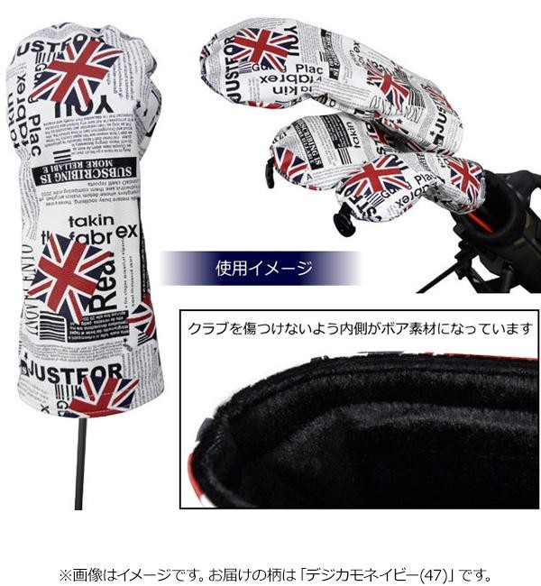 表面は柄を最大限アピールしたデザイン。裏面はずり落ち防止のため、2箇所にゴム入り。ブランドロゴは織りネームタグで入っています。オシャレなだけでなく、使い勝手もバツグンのヘッドカバー。 |