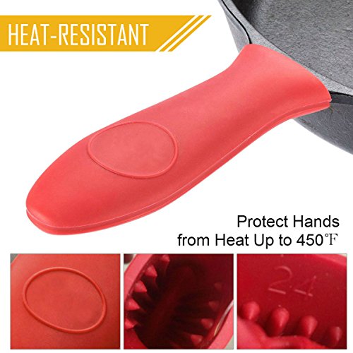 【Great Using with Hot Handle Holder】Silicone 5.7 inch long hot handle holder is designed to fits Keyhole handle skillets 9 inch diameter and up,and traditional-style skillets 10.25-Inches and up.