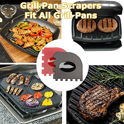 【ALL-PURPOSE SKILLET CLEANER】Set of 2 GRILL PAN Scrapers have two sets of solid teeth designed to fit any modern Grill Pans;Straight edges and curves for flat and curved areas. Set of 2 PAN Scrapers have 4 different shaped corners for cleaning any shaped pan bowl dish, also ideal gum, sticker remover.