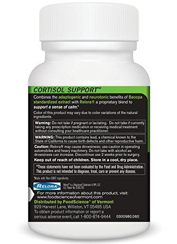 FoodScience of Vermont- Cortisol Support, Stress Management Supplement, 60 capsules