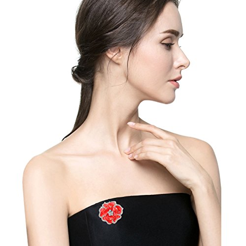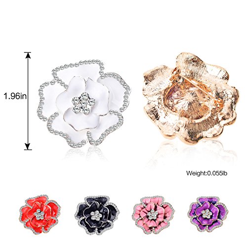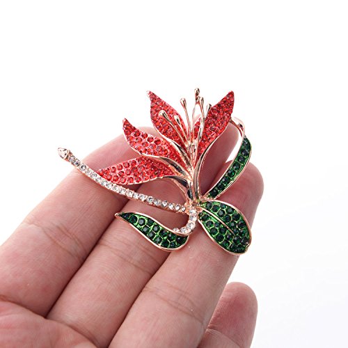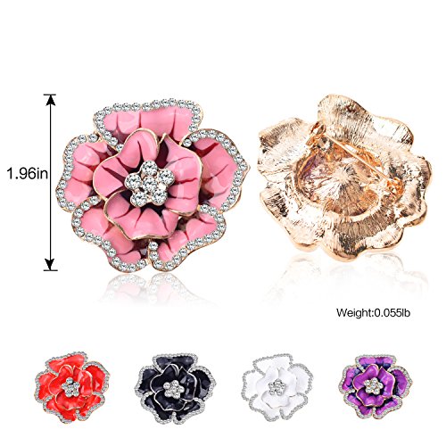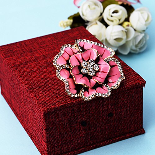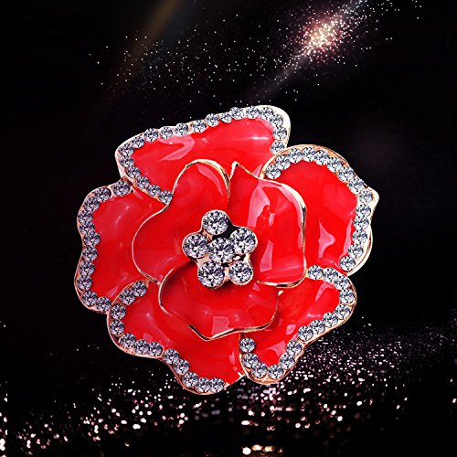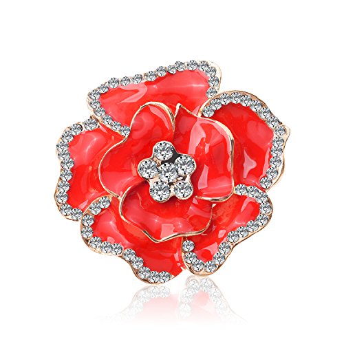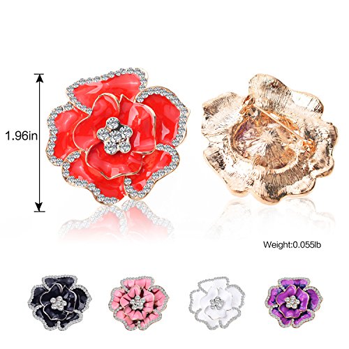 TAGOO Red Flower Brooch Shawl Pin Clip Corsage 1.85" in Crystal Rhinestone for Women and Teen Girls