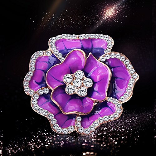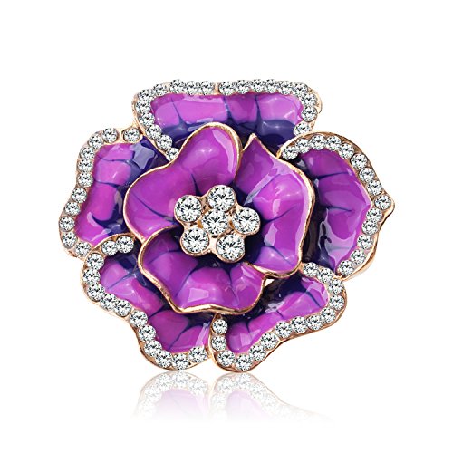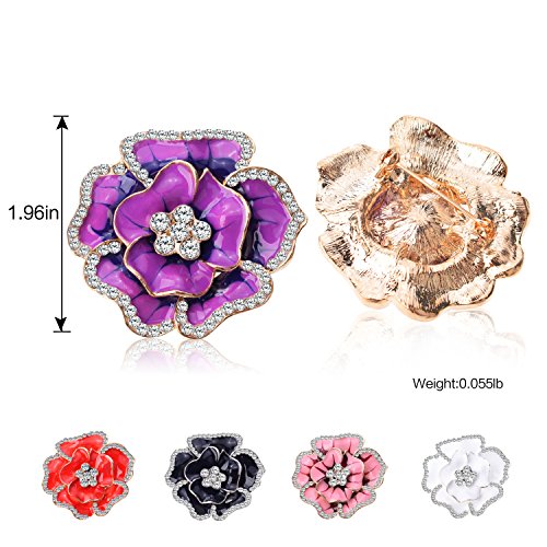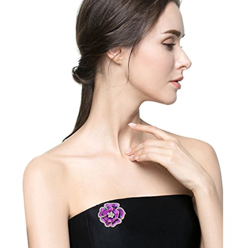 TAGOO Floral Brooch Shawl Pin Clip Corsage in Crystal Rhinestone for Women and Teen Girls (Clear Crystal Purple Blooming Flower 1.96"x1.96")