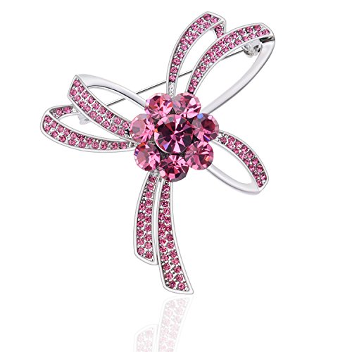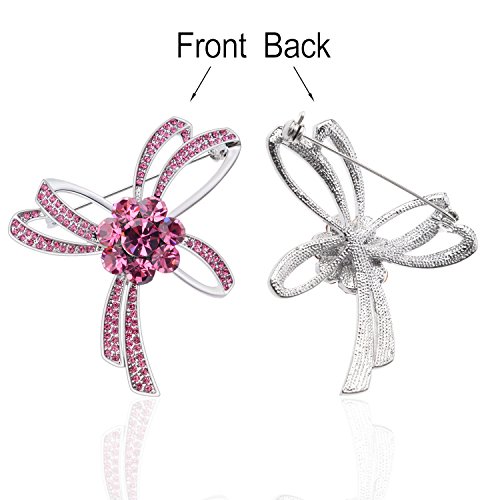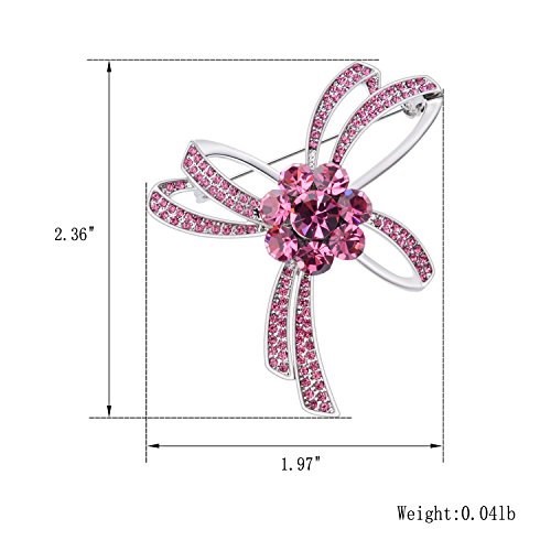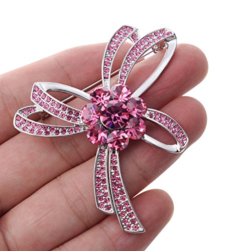 TAGOO Floral Brooch Shawl Pin Clip Corsage in Crystal Rhinestone for Women and Teen Girls (Pink Crystal Ribbon 2.36"x1.97")