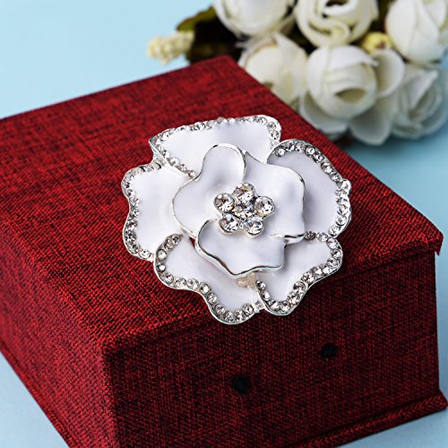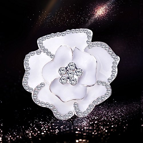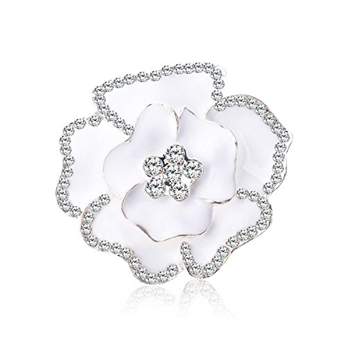 TAGOO Floral Brooch Shawl Pin Clip Corsage in Crystal Rhinestone for Women and Teen Girls (Clear Crystal White Blooming Flower 1.96"x1.96")