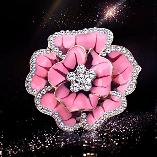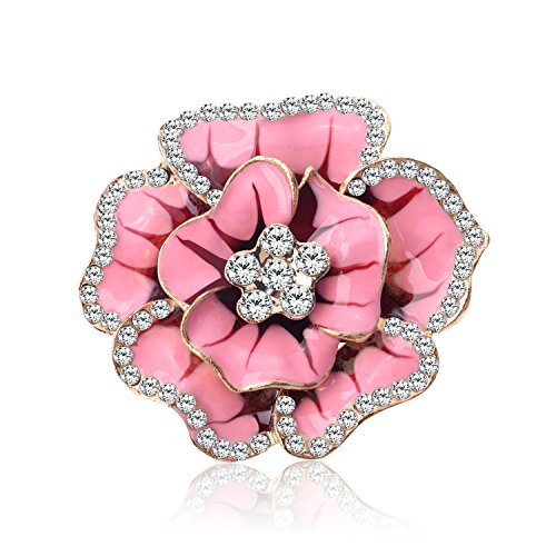 TAGOO Floral Brooch Shawl Pin Clip Corsage in Crystal Rhinestone for Women and Teen Girls (Clear Crystal Pink Blooming Flower 1.96"x1.96")