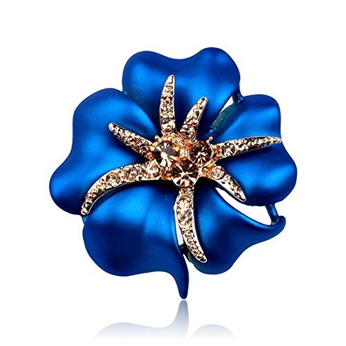 Tagoo Gold Plated with Rhinestone Folwer Shape Women's Retro Noble Pins Brooch (Blue)
