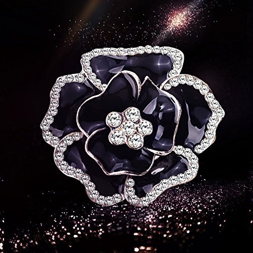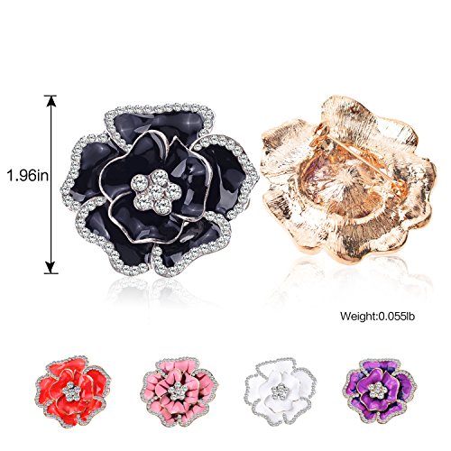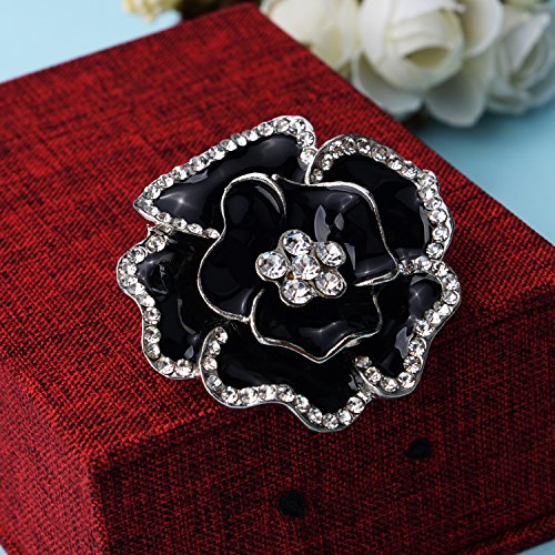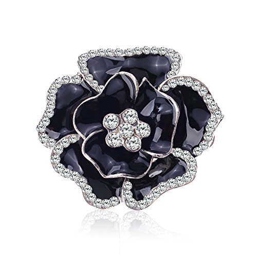 TAGOO Floral Brooch Shawl Pin Clip Corsage in Crystal Rhinestone for Women and Teen Girls (Clear Crystal Black Blooming Flower 1.96"x1.96")