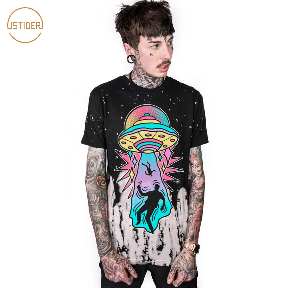 Pattern Type:Punk UFO Printed Short Sleeve Casual Loose Men T Shirt