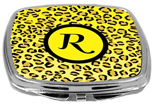 Rikki Knight Compact Mirror, Letter r Initial Yellow Leopard Print