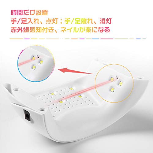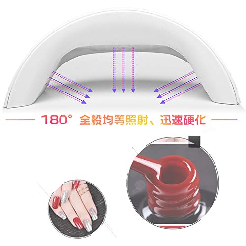 ☆均一照射、迅速硬化☆ジェルネイルライトは36ワットのハイパワーで光の拡散力をアップして、180°全般均等照射できます。ジェルネイルとUVレジンどちらも迅速硬化られます。