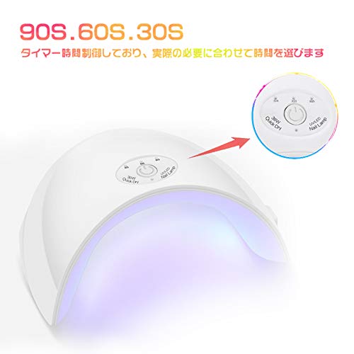 ☆便利な三段階タイマー機能付き☆90S、60S 、30Sのタイマーを硬化時間制御しており、実際の必要に合わせてボタン押すだけで時間を簡単に転換可能;デフォルト時間は90Sです。硬化時間の迅速と消費電力の両立を目指し、36wの消費電力で、早速硬化を実現しました。