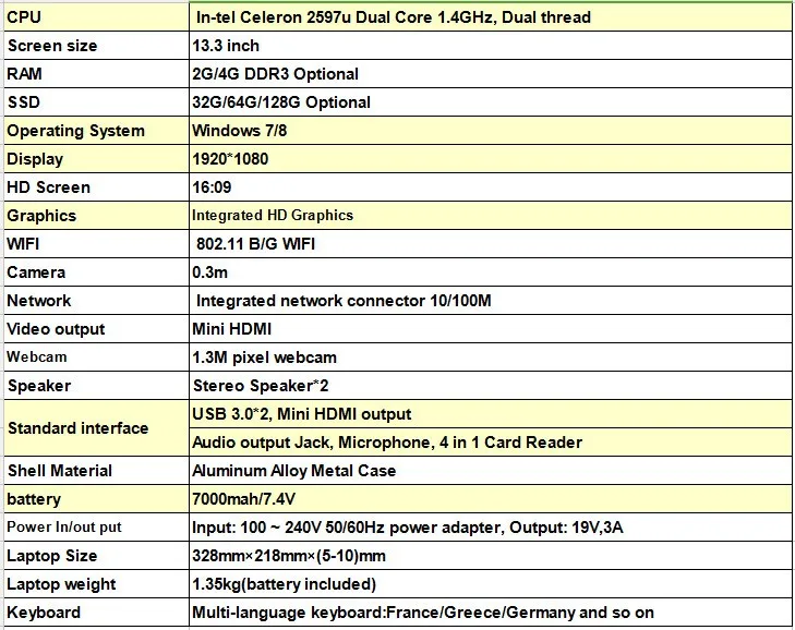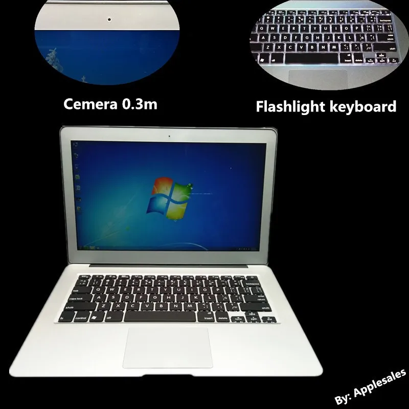 送料無料懐中電灯キーボード13.3インチラップトップアルミ金属ケースコンピュータデュアルコア1.4 ghz 2ギガバイト/64ギガバイトssd 7000 mah usb3.0