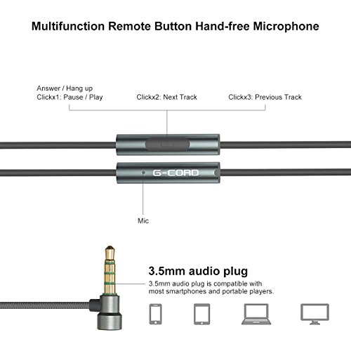 G-Cord Ceramic In-ear Noise-isolating Headphones with Mic and Smart Remote Control (Black)