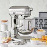 -. Feature : A fixture in both commercial and home kitchens, KitchenAid's iconic stand mixers have a well-earned reputation for professional-grade performance and rock-solid durability / Hand-assembled in Greenville, Ohio, this brushed nickel stand mixer pairs a powerful 1 / 3-horsepower motor with a planetary mixing head for quiet, efficient and thorough mixing every time / With a bowl lift for easy access, 10 speeds for stirring, whipping and everything in between, and three optimized mixing heads, it's the ultimate in mixing convenience-and thanks to the commercial-grade, heavy-duty construction, it will be part of your kitchen for years to come