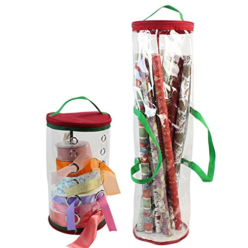 GIFT WRAP STORAGE SET----This kit includes one clear ribbon storage bag and one clear gift wraping paper carrier.