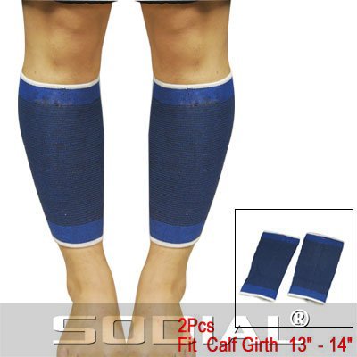 -. Title : SODIAL(R) 2 Pcs Sports Black Blue Striped Calf Leg Sleeves Support Elastic Protector