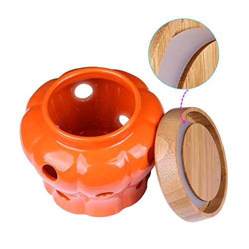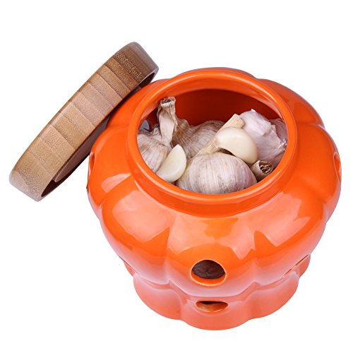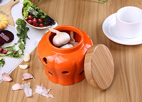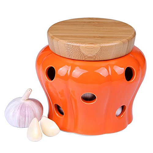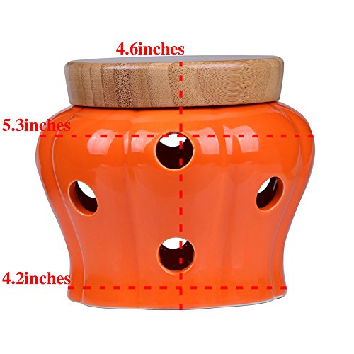 Vented Garlic Keeper Storage Container with Tight Seal Bamboo Lid, Orange