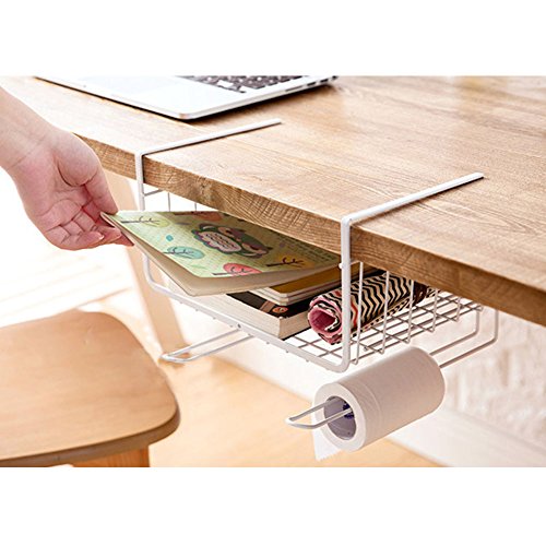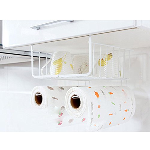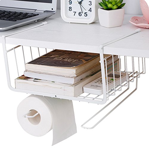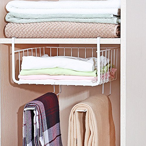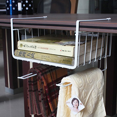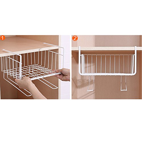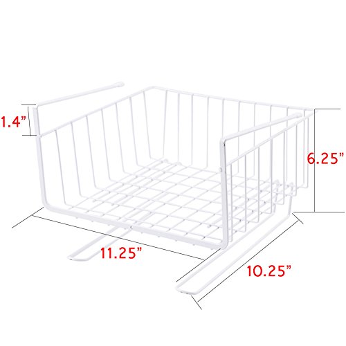 Under Shelf Wire Rack Basket Kitchen Organizer, Stainless Steel, White