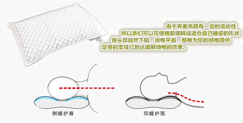 buckwheat pillows provide excellent support for the head, neck and back because the filling contours to the weight and shape of the body during sleep. The pillows also provide natural air circulation between individual hulls, resulting in ideal temperatures for peaceful sleeping.