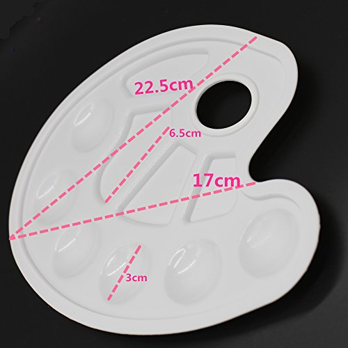 -. Feature : Made of molded white plastic, it is durable and easy to clean. / Size:Please look at the picture. / Ideal for distributing paint. / Package includes 10 of Horseshoe Shape Paint Tray Palette / Horseshoe Shape plastic palette contains 10 shallow wells.