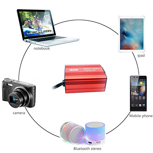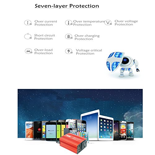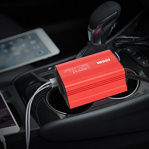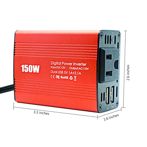 What is our power inverter? It can be used for camping, outdoors, vacations,road trips, and even charging household items. Dual USB ports effortlesslycharge two devices (including any smart phones and tablets) at once while theoutlets can power a wide range of power-hungry items on the road. Maybe youdon't often use it, but everyone should get a 12v power inverter in the car,just in case. Silent Fan:? Smart cooling fan makes the car power invertersilent when operating, and it runs faster when it gets warmer.? Protection measures: Full-protection with short-circuit, low-voltage,over-charge, over-voltage, over-load, over-temperature protection, built-infuse.? Utility Cord Cigarette Lighter:? Placed random, about 16 inches length cable withcigarette lighter plug since we can reach it to power a laptop in the rearseats.? Product Specification: Input: DC 12V/20A (Max) AC Output: 110V USB Output: DC 5V/2.1A 1A Total Power: 150W Low Voltage: ≤9.5V Over Voltage: ≥14.5V Size: 3.2 x 2.4 x 1.4inches (82 x 61 x 34mm)? Product Weight: 8.1 oz 0 |
