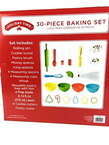 Holiday Time 30- Piece Baking Set..Includes Rolling Pin, Cookie Scoop, pastry Brush, cutter, Bag and Reusable Tips,