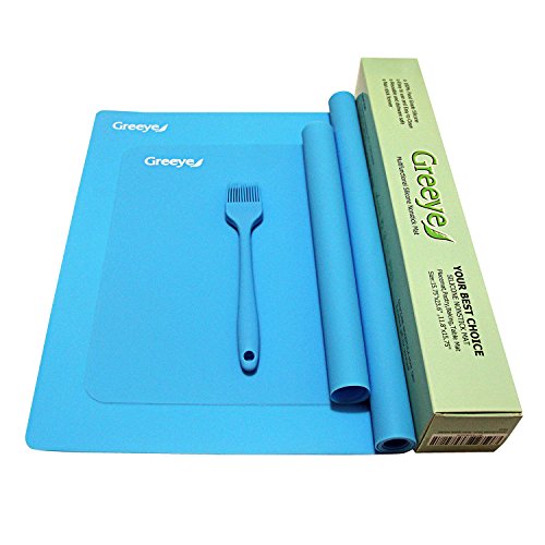 Greeye Nonstick Multi Purpose Silicone Pastry / Baking / Table /Place Mat +Gift Box 2pack- Extra Large size 15.75''x23.6'' Medium Size 11.8''x15.75'' Blue - Silicone Brush Included