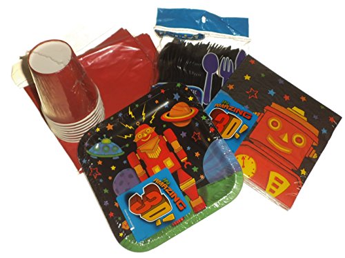 Amazing 3D Robot Birthday Party Supplies - Plates, Napkins, Silverware, Cups, Tablecover