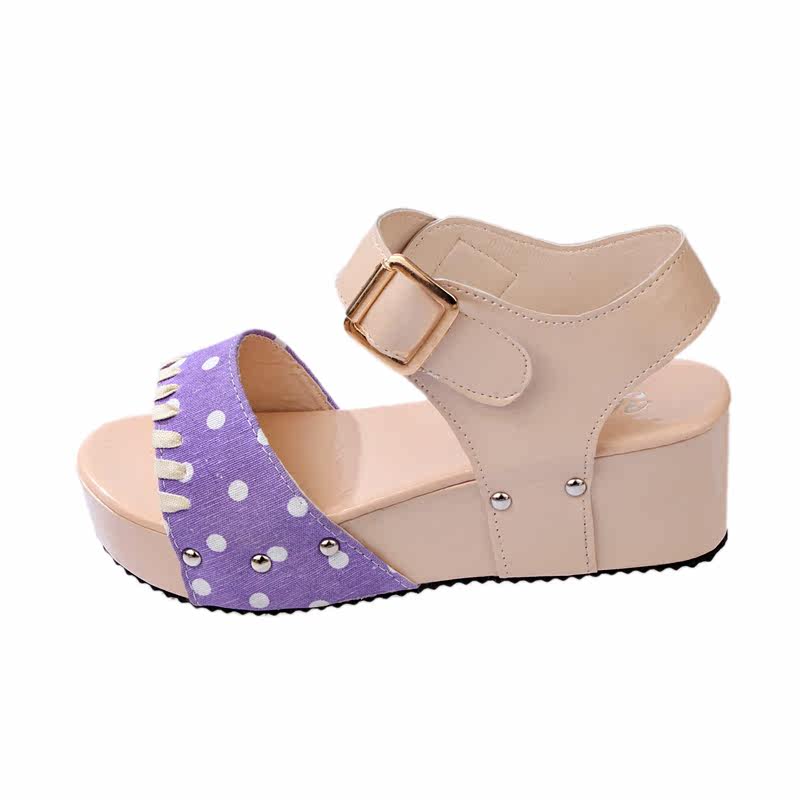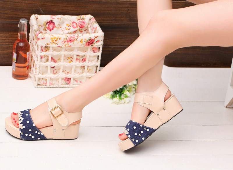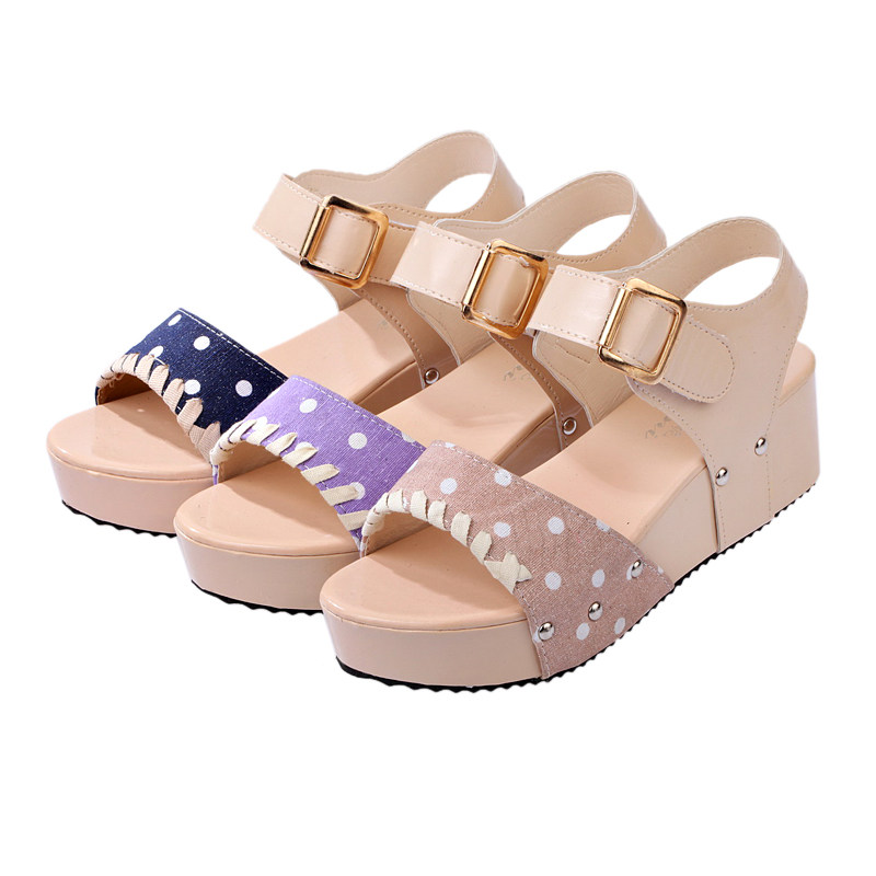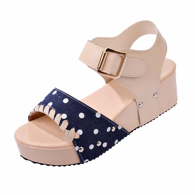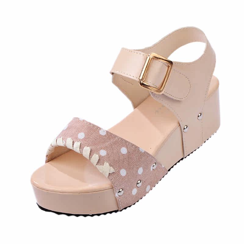 春夏新款凉鞋 女露趾厚底松糕凉鞋防水台坡跟高跟鞋女凉鞋女