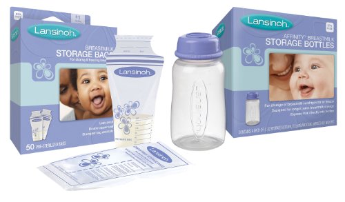 -. Feature : Ideal for storing & freezing breastmilk; Convenient pour spout; Strongest and largest bag available, holding 6 oz. of breastmilk / Leak-proof with our patented double Click 'n' SecureTM seal; Bags lay flat for efficient storage and thawing / Storage Bottles works with Lansinoh® Manual and Double Electric Breast Pumps / Fits most other standard size breast pumps; Freezer and dishwasher safe; BPA free / This includes: 50 Storage Bags and 4 Storage Bottles