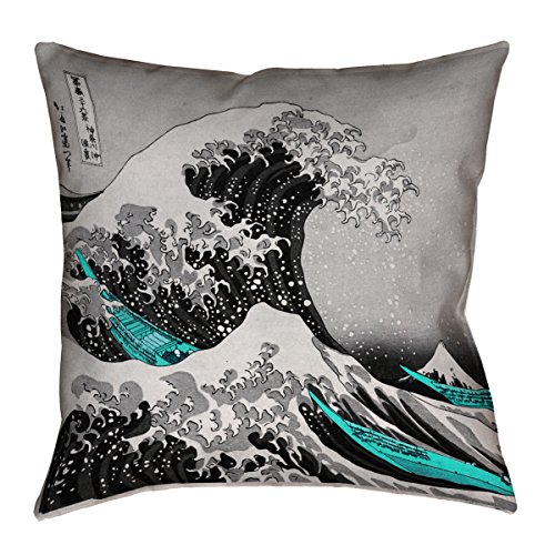 ArtVerse Katsushika Hokusai the Great Wave with Teal Accents Pillow-Spun Polyester Double Sided Print with Concealed Zipper Cover Only, 26" x 26"