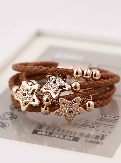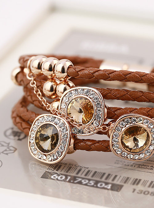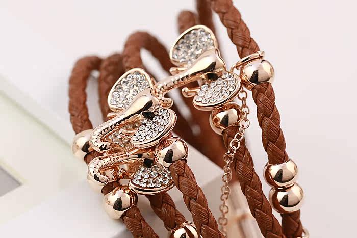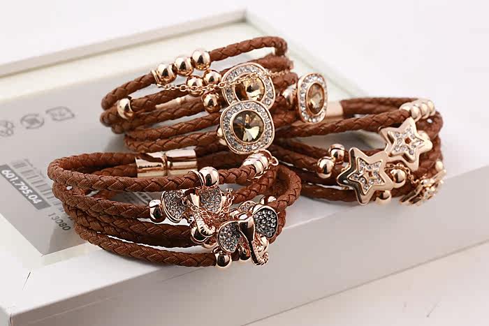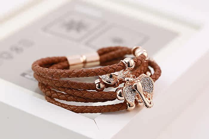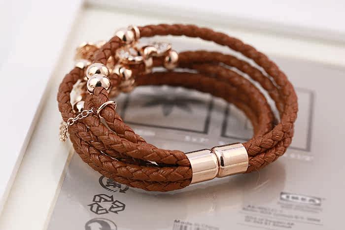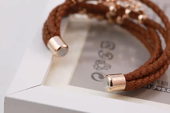 Material: three layer vacuum plating 14 K / super color retention, leather rope