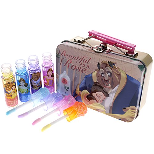 Townley Girl Disney Beauty and the Beast Super Sparkly Lip Gloss Set with Decorative Carrying Tin, 4 Fun Flavors