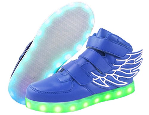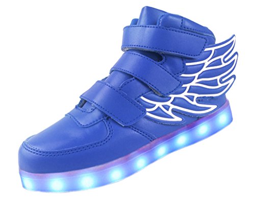 RIY Wings Velcro High-Top Sport Shoes USB Charging LED Light Up Flashing Sneakers for Kids Boys Girls
