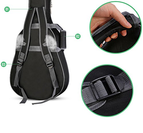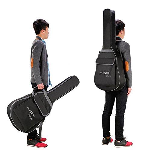 -. Brand : Eleoption -. Feature : Features high-quality material and compact size can offer your guitar utmost protection. / 2-Shoulder Straps,Waterproof durable / Padded and soft-sided design, with cotton inside,protect guitar from bumps during transport and carrying. / Size:107x42cm .It's suitable for 40 or 41 inch guitar. / The stylish appearance and solid construction will keep your guitar against scratches and dirt -. Label : Eleoption -. Manufacturer : Eleoption -. PackageQuantity : 1 -. ProductGroup : Musical Instruments -. ProductTypeName : INSTRUMENT_PARTS_AND_ACCESSORIES -. Publisher : Eleoption -. Studio : Eleoption -. Title : ELEOPTION 40"41" Inches Guitar Bag Cover Case, Dual Adjustable Acoustic Guitar Shoulders Bag Waterproof