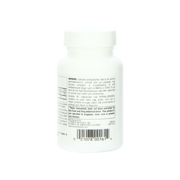 소스 내츄럴의 [해외 직송품] Source Naturals 유익 사이즈 L-페닐알라닌 500mg 100알