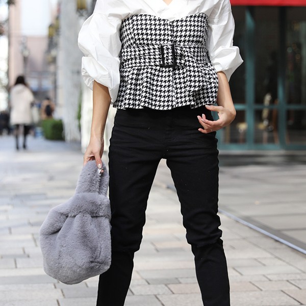 持ち手をクロスして持つのが今年流のスタイリング◎ふわふわのファーの手触りがクセになりそうな、マルシェバッグです。ファーのボリューム感と丸い形がマッチして、遊び心たっぷり。ちょこんと持って、こなれ感アップ!シーズンムードたっぷりのアクセントにおすすめです。 モデル:(室内)160cm (屋外)157cm