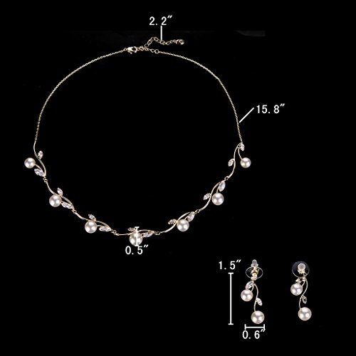 CZ Color: Clear; Simulated Pearl Color: Ivory Color; Necklace Length: 15.8in-18in, Pendant Length: 0.5in by 7.8in, Earring Size: 1.5in by 0.6in; Total Weight: 12g